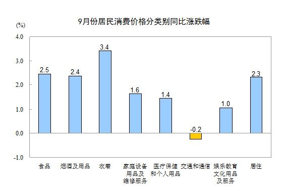 9月CPI同比漲1.9% 居住價格同比上漲2.3%