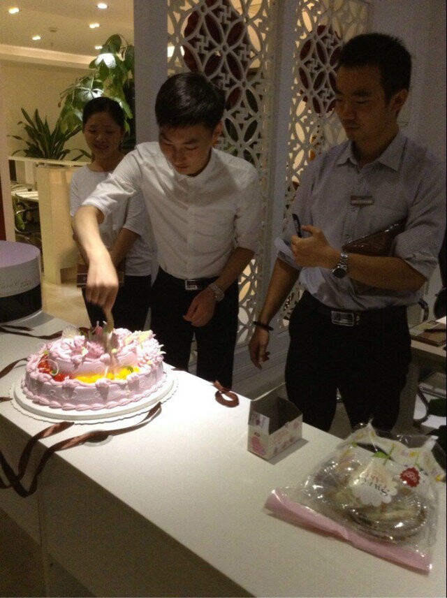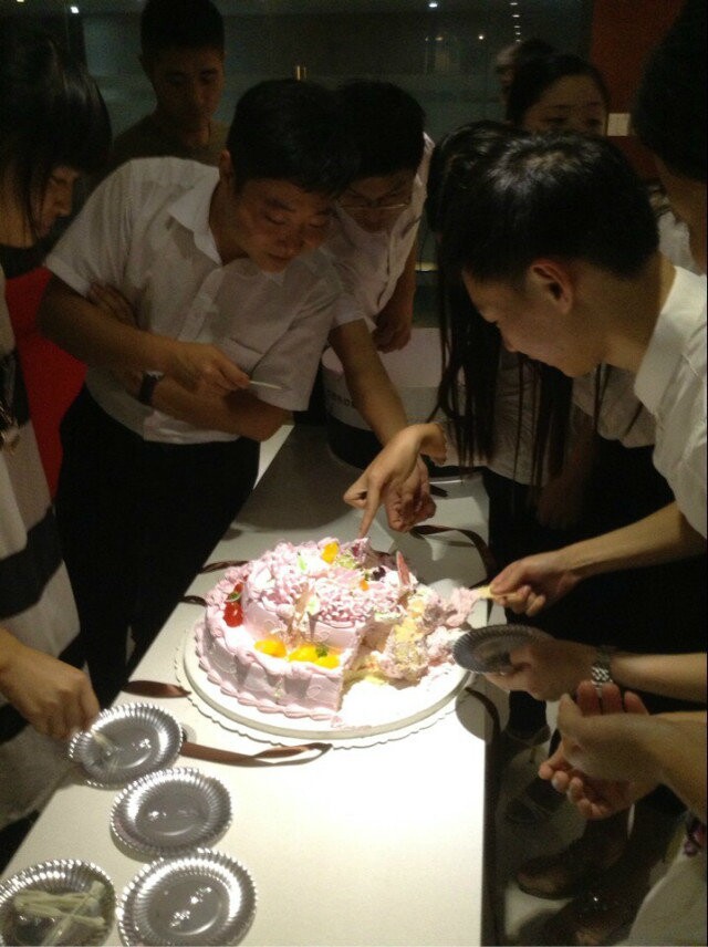 終于有部分女同事也開始了蛋糕的分享,“你看,這個字是我寫上去的”“什么啊,這個花這么漂亮,當然是要分給我了”,各種吵鬧聲不絕于耳,但是就是在這樣一個平凡的夜晚,卻有著那么一群人,滿載著對新生活的希望和夢想緩緩向前,走在東方華美的路上,迎接更美好的一天。