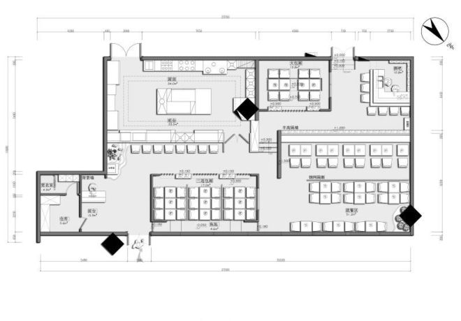 ▄原建筑結構分析: 散座區的整體設計以木飾面和日式裝飾為主,色調溫暖,塑造了溫馨的就餐氛圍,體現了一個祥和安逸的生活狀態,緊張的工作之后來此就餐體會到一種放松的感覺。