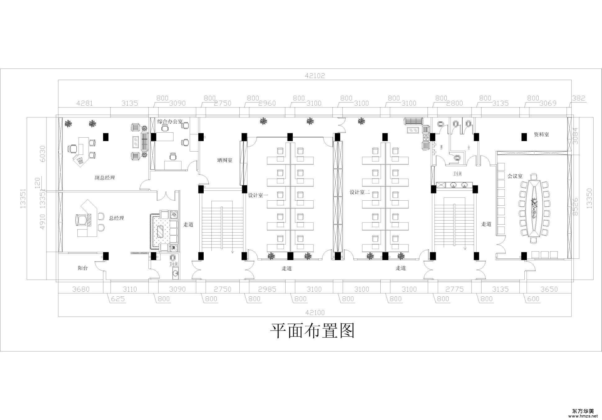 ▄設計需求: 甲方對空間的功能需求為空間內要前臺、辦公區、經理辦公室、董事長辦公室、會議室等,設計師根據此要求完成了平面布置圖。